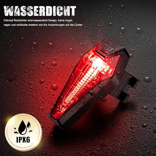 Dank seiner robusten Konstruktion hat unser Amitor LED-Rücklicht eine lange Lebensdauer. Wasserdicht nach IPX6 ist es vor Schäden am Elektrik und der Batterie geschützt. Das 220°-Weitwinkel-Design bietet ein größeres Sichtfeld, das die Umgebung im Dunkeln ohne tote Winkel beleuchtet. -