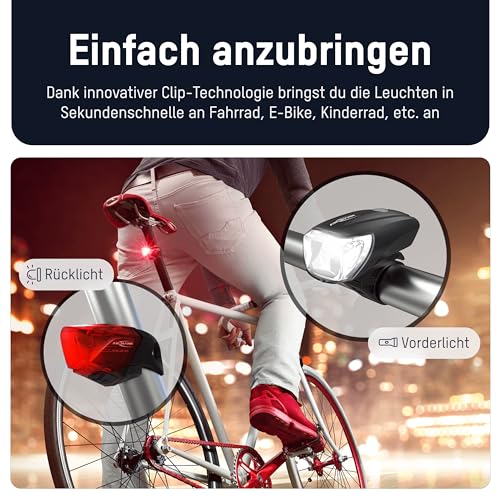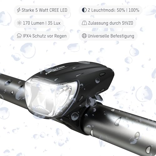 Zuverlässig: Speciell in der Frontlampe verwendeter Reflektor für optimale Sichtbarkeit / Spritzwasserbeständigkeit, um sicheren Reisen bei Regen zu gewährleisten / Offiziell zugelassener Teil des öffentlichen Straßenverkehrs nach den StVZO-Regelungen.