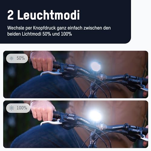 Wiederaufladbar: Simplifizierter Wiederaufladungsvorgang für die Akkupacks in Front- und Rückleuchte mit dem dabei mitgelieferten USB-Kabel an ausgewiesenen USB-Ladegeräten, Powerbanks etc. / Dauerhafte Akkulaufzeit von bis zu 6 Stunden.