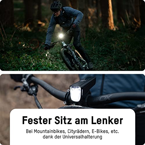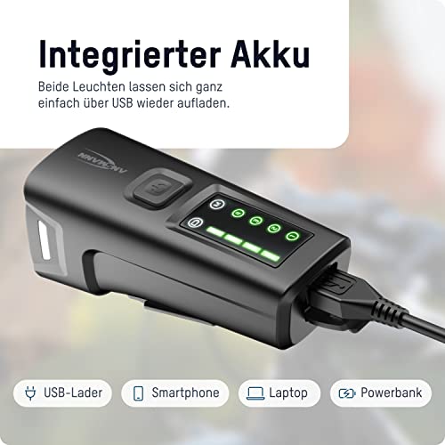 ANSMANN Wiederaufladbare LED-Fahrradlampe 100 Lux – Leistungsstarkes Fahrradlicht für Radfahrer – Für Nachtfahrt mit 200