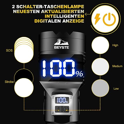 BEYSTE LED Taschenlampe Aufladbar Für Outdoor Notfälle 600000 lumen Starke Takthelle USB Akku Taschenlampe