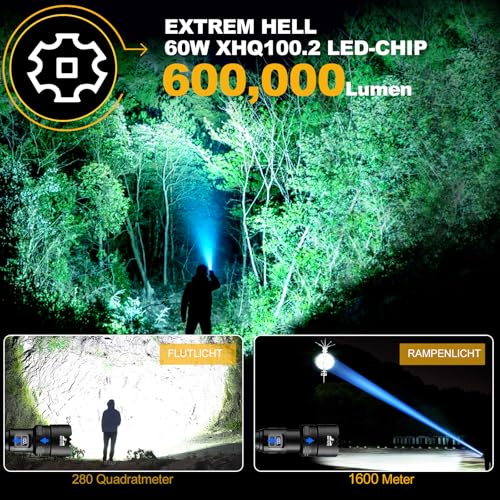[LED Taschenlampe EXTREM HELL 600000 Lumen]