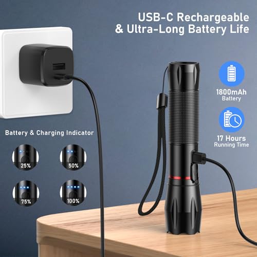 • Doppelpack: Egal ob für sich oder einen Begleiter, erhalten Sie 2 Taschenlampen, 2 USB C Ladekabel und ein Benutzerhandbuch.