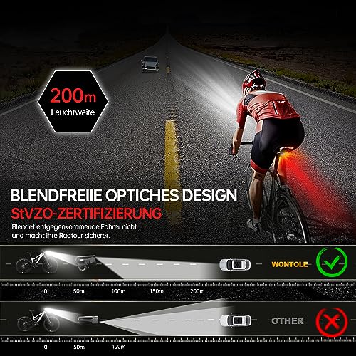 Blendfreie Optik: Entworfen mit blendfreier Optik, um Ihnen nachts eine klare Sicht zu ermöglichen und für Ihr alltagstaugliches Radfahren, Wanderungen und Outdoor-Aktivitäten optimal geeignet zu sein.