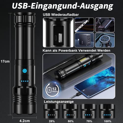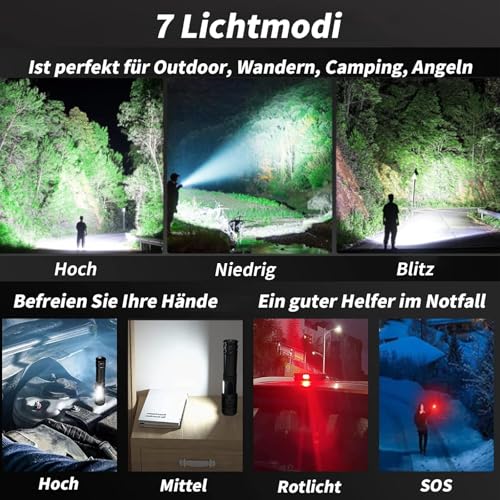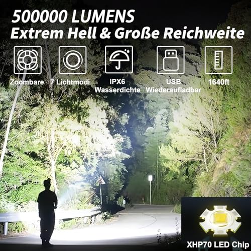 【500000 Lumen Extrem Hell】Beste Wiederaufladbare Taschenlampe Für Intensives Leuchten