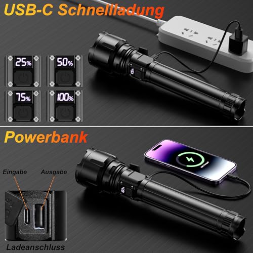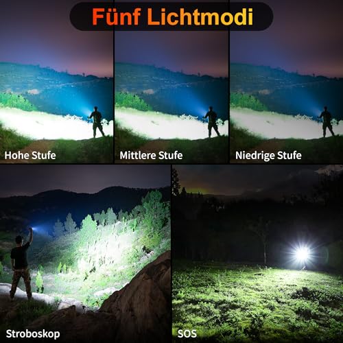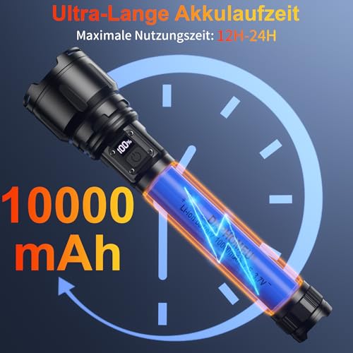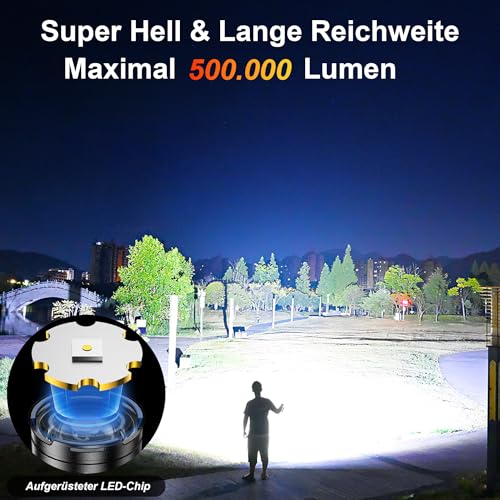 - 500.000 Lumen: zehnmal hellere Helligkeit als herkömmliche Taschenlampen.