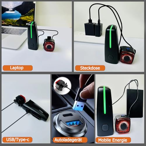 Das hochwertige Rücklicht ist mit LED ausgestattet und verbraucht hochwertige 200-mAh Lithium-Ionen-Akkusystem. Diese können bis zu vier Stunden sicher laufen. Bei der Warnung durch eine blaue LED muss die Batterie sofort aufgeladen werden.