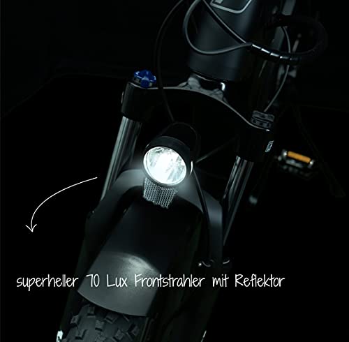 Luminous: Der Dynamo LED Scheinwerfer hat eine mächtige LED mit 70 Lux, welche eine integrierte Dämmerlichtfunktion bietet.