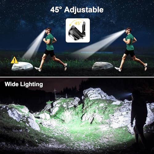 45° Abstelbar und bequemer Strick: Das Licht kann an einem Winkel von 45 Grad abgestellt werden. Du kannst die Lichtrichtung auf eine ortsgerechtere Position einstellen. Der elastische Strick ist bequem und atmet, adaptiert sich an verschiedene Kopfumshapes und ermöglicht es sowohl Erwachsenen als auch Kindern, das Licht uży easily und sicher zu verwenden.