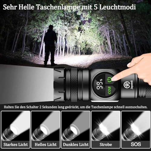 SEHR HELNES MULTIFUNKTIONELLES TASCHENLAMPE: Die F13-Taschenlampe bietet 5 Hauptbeleuchtungsmodi: Hoch, Mittel, Niedrig, Stroboskop und SOS. Für krumme Arbeiten wird ein COB-Seitenlicht mit 4 Modi, einschließlich Hochwarm, Warm, Rot und Rotes Stroboskop, bei vollerorts häuslichen Aufgaben eingesetzt.