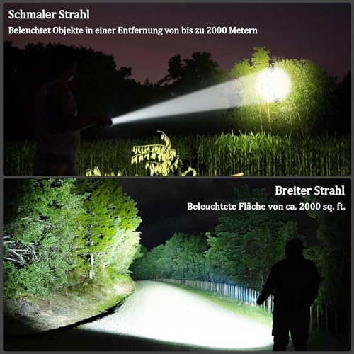 LED TASCHENLAMPE EXTREM HELL: Die F13 Taschenlampe ist die perfekte wiederaufladbare Lösung für Outdoor-Reisen und Notfälle. Mit einer Leistung von 500.000 Lumen ist sie extrem hell und ermöglicht das Zoomen der Belichtung. Verfügt in den Moden Zoom und Flutlicht über beeindruckende Lichtbereiche.