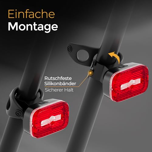 Durch IPX5 Spritzwasserprotektion ist dein Fahrrad Rücklicht ideal für Regenfahrten. Es verfügt über die erforderliche Sicherheit nach den Vorgaben des STVZO.