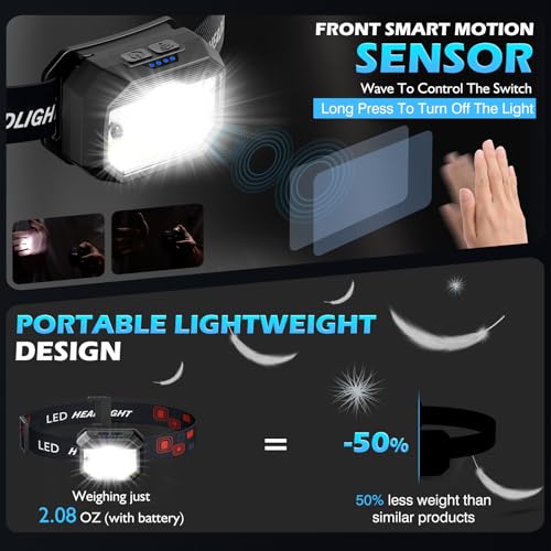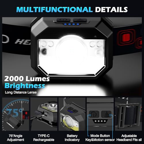 - MAXIMALER LÜSTERSCHAFT UND WEITEREICHUNG: Mit einer maximalen Lüsterschaft von 2000 Lumen und einem Beleuchtungsbereich von 300 bis 500 Metern sehen Sie Ihre Umgebung klar in Finsternis. Das Motion Sensor-Paket aktiviert die Stirnlampe automatisch, wenn sich Objekte in der Nähe befinden.