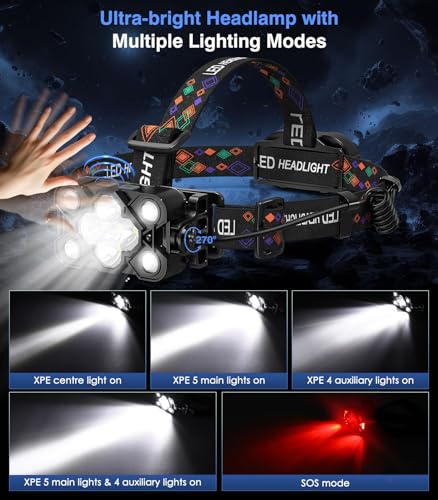 Unsere Stirnlampe ist ausgestattet mit XPE- und COB-Lampenkugeln. Sie belts bis zu 30.000 Lumen und verfügt über eine Leuchtweite von fast 500 m/1640 ft, was sie ideales Outdoor-Ausrüstung für Abenteuer auszeichnet.