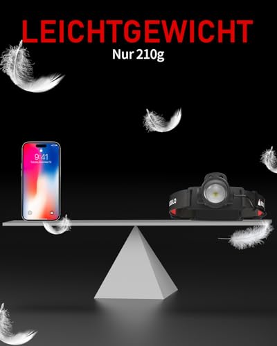 Sehr leicht und bequem: Dieser Headlamp ist kaum wahrnehmbar. Mit nur 210 g (inclusiv Batterien) und einer gemütlichen Federfederlegierung, die sich perfekt auf Stirn und Hinterkopf legt, garantieren wir maximalen Tragkomfort. Hohe Qualität und ausgefinfter Handwerkskunst verleihen diesem Headlamp einen luxuriösen, eleganten Charme.
