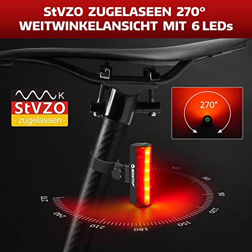 🚴 StVZO Zugelassen & Weitwinkelansicht — Das LED Rücklicht für Fahrräder ist das Neueste Modell mit KBA Freigabe. Es bietet 6 super hell LEDs, die den Fahrer besser sichtbar machen und die Sicherheit verbessern.