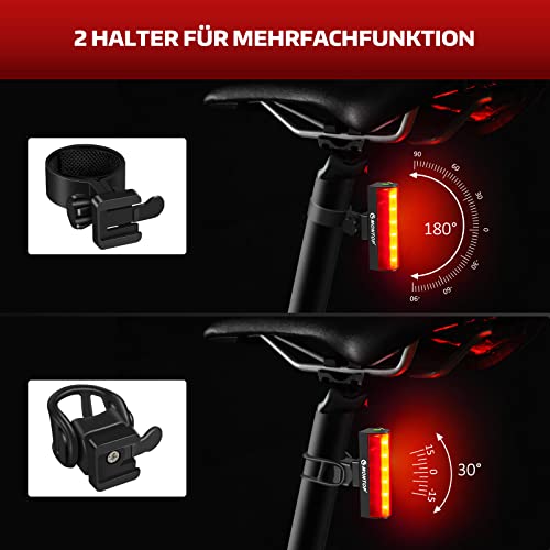 🚴 Einfache Installation & 2 Halterungen — Die Montage und Abmontage sind ohne Werkzeug möglich. Wir bieten 2 variabel einstellbare Halterungen für 30° auf, die das Rücklicht an passende Fahrräder anpassen lassen. Sie können auch eine retro StVZO Rückleuchte für zwei Fahrräder verwenden.
