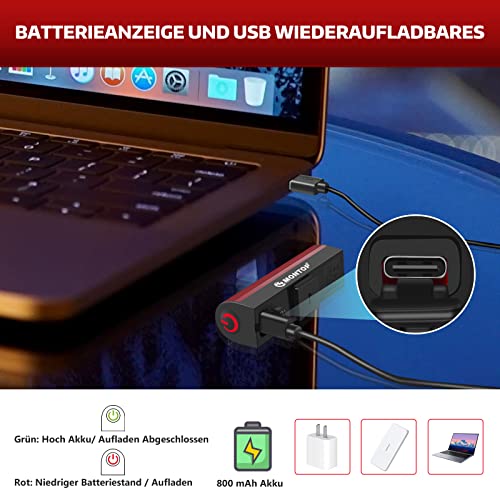 🚴 Batterieanzeige & USB-Wiederaufladbar — Das Rücklicht verfügt über eine Batterieanzeige, die Sie daran erinnert, wenn die Batterie schwach ist, und den Ladestatus anzeigt. Der 800 mAh Li-ion Akku kann von USB-Anschlüssen oder Ladegeräten, PCs oder Power Banks aufgeladen werden.