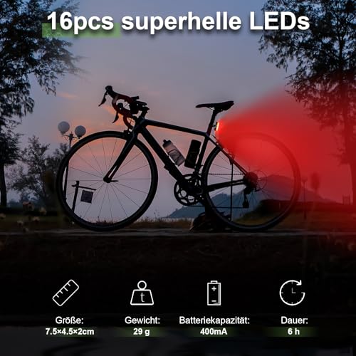 Das Rücklicht für Fahrräder verfügt über fortschrittliche LED-Technologie mit 16 superhellen LEDs. So sorgen Sie bei Nachtfahrten für eine leistungsstarke Beleuchtung und eine optimale Sichtbarkeit.