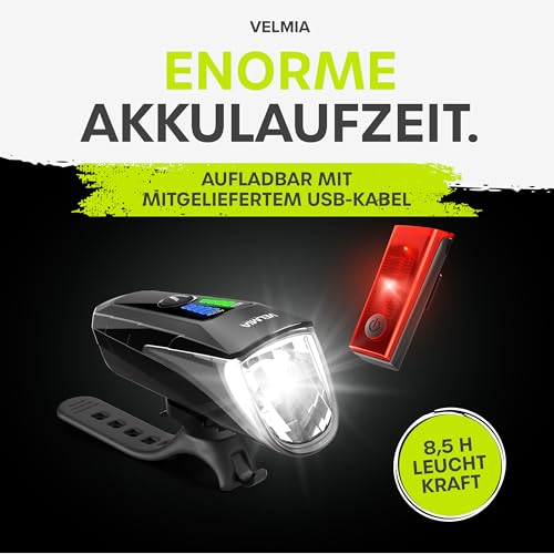Die Akkus des Lichtsets sind per Micro-USB schnell & einfach wiederaufladbar und ermöglichen dir mit einer Leuchtdauer von bis zu 8,5 h spannende Fahrten zu später Stunde!