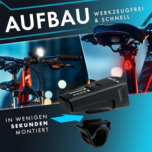 - Wetterfestigkeit und Robustheit: IPX5-Zertifizierung und kFromDate teckende Ladebuchsen gewährleisten, dass das Set auch in undurchlässiger Witterung und immer bestens am Rad befestigt bleibt.