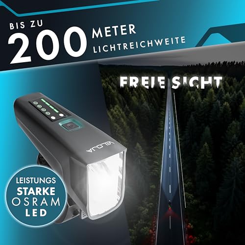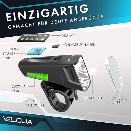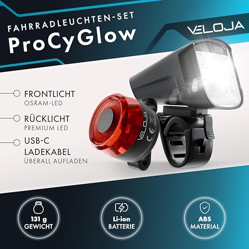 Mit OSRAM LEDs, bietet das VELOJA ProCyGlow Fahrradleuchten-Set eine beeindruckende Helligkeit von bis zu 100 Lux und ist dabei blendefrei. Zertifiziert nach StVZO für eine sichere Fahrt.