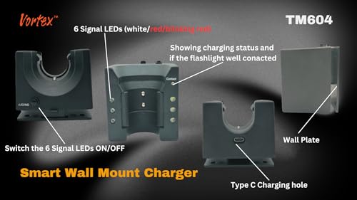 [7/24 Standby] Unter Überladeschutz erfolgt eine 24/7 Weiterladung. Die LEDs an der Ladewandhalterung werden automatisch eingeschaltet, wenn der Strom ausfällt, damit der Benutzer die Taschenlampe leicht sehen und erreichen kann. Die LEDs können optional ausgeschaltet werden, falls das Signal nicht benötigt wird.
