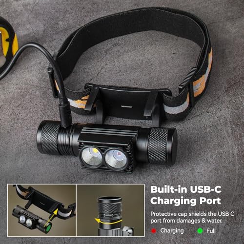 USB wiederaufladbar und Betriebsanzeige: D25LR ist eine hochwertige wiederaufladbare USB Stirnlampe mit integriertem Akku und Typ-C Ladeanschluss. Diese Stirnlampe kann mit dem mitgelieferten USB C Kabel bequem aufgeladen werden, ohne dass der Akku entfernt werden muss. Die durchdachte Ladezustandsanzeige erinnert Sie immer daran, rechtzeitig aufzuladen, wenn die Leistung niedrig ist.