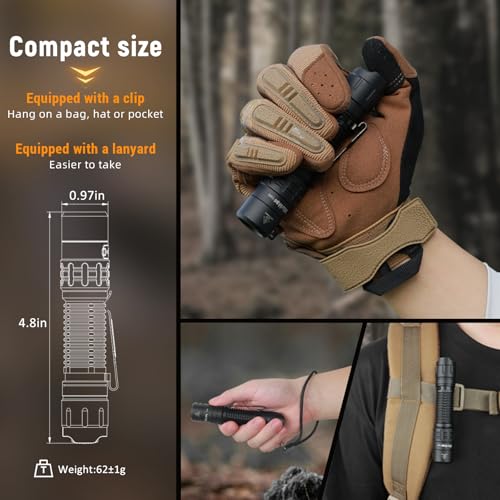 Sechs Helligkeitsstufen decken die meisten Anwendungen ab – von 10 Lumen bis hin zu 2000 Lumen im Turbomodus. Die Lampe ist die beste Wahl für EDC, egal ob am Job oder an Wochenenden und Feiertagen.