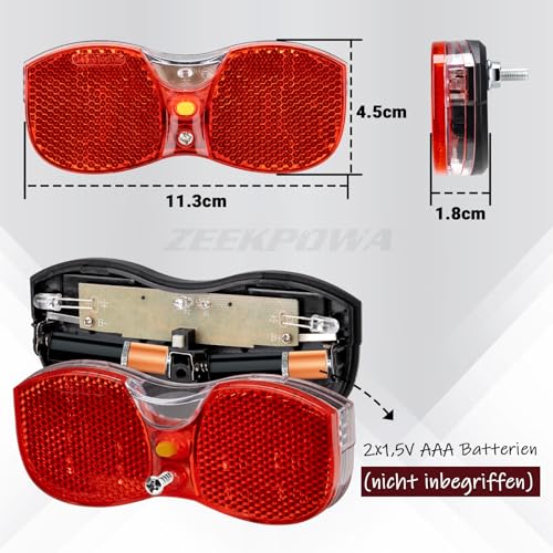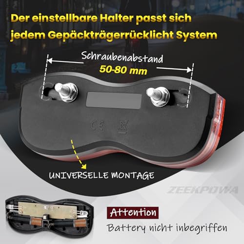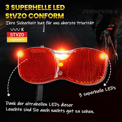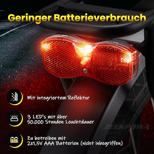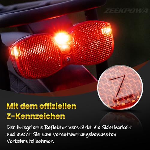 – Direkter Anschluss und Vorbehaltsfreiheit: Direkter Anschluss an Antriebsbatterien durch eine 2-Kabel-Schnittstelle (Kabel separat). Sogar bei Stromausfall bleibt das Fahrradlicht Hinten durch den passiven Z-Reflektor betriebsbereit.